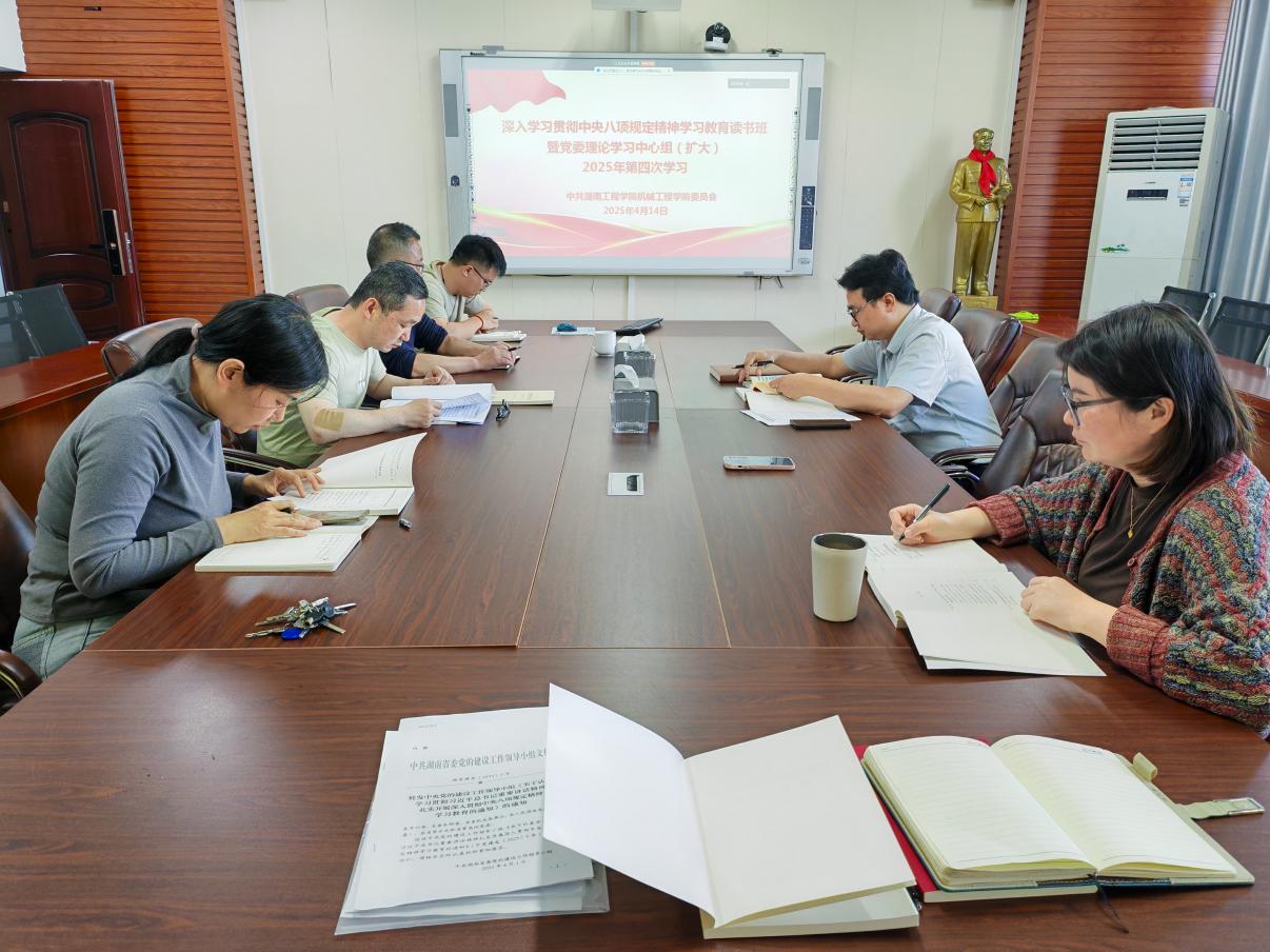 4月14日下午,2007so太阳集团党委在机械楼311会议室,召开深入贯彻中央八项规定精神学习教育读书班暨党委理论学习中心组(扩大)2025年第四次学习。学院党委书记陈国强线上主持会议,学院党委委员、支部书记、专职组织员,参加会议。