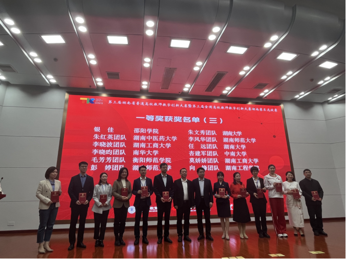 第三届湖南省普通高校教师教学创新大赛共有来自全省52所高校的191个教师团队作品参加省赛网络评审,78位教师个人(团队)入围现场决赛,最终评出一等奖32项、二等奖46项和优秀组织奖10项。